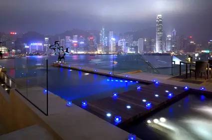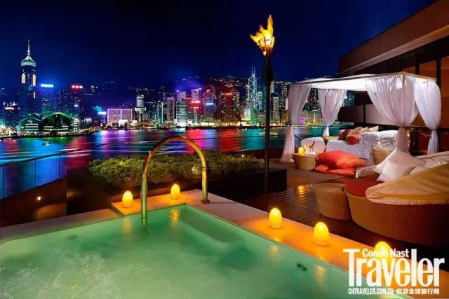 香港洲際酒店陽臺上的一張床,既可以讓你看到這個城市的繁華,也能領略到夜晚星空的閃爍。