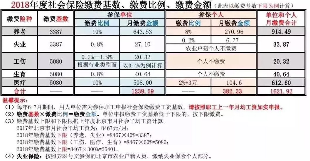以北京為例,2017年北京職工月平均工資8467元/月,不考慮工資變動(dòng),一名女性22歲畢業(yè)開(kāi)始工作,55周歲退休(此處我們忽略延遲退休這事) 【個(gè)人】社保與公積金繳費(fèi)總額 8467× 10.2%+3(社保)+8467×12%(公積金)=個(gè)人繳費(fèi)合計(jì):1882.67元 需繳納個(gè)稅:203.73元 【單位】社保與公積金繳費(fèi)總額 8467× 31%(社保)+8467×12%(公積金)=單位繳費(fèi)合計(jì):3640.81元 (工傷費(fèi)率按行業(yè)類別及工傷事故發(fā)生率等因素實(shí)行浮動(dòng)費(fèi)率) 個(gè)人每個(gè)月需要繳納的五險(xiǎn)一金+個(gè)稅是1882.67(五險(xiǎn)一金)+203.73(個(gè)稅)=2086.4元 1年要繳納這么多: 2086.4×12=25036.8元 33年要繳納這么多: 25036.8×33≈83萬(wàn) 才83萬(wàn),在北京是不是連買個(gè)房都只夠交個(gè)首付? NoNoNo,以上只是職工個(gè)人繳納部分,企業(yè)繳納的還沒(méi)算進(jìn)去呢? 企業(yè)1年要繳納這么多: 3640.81×12=43689.72元 企業(yè)33年要繳納這么多: 43689.72×33≈144萬(wàn) 個(gè)人+單位合計(jì):83+144=227萬(wàn) 也就是說(shuō)我們工作大半輩子,社保公積金和個(gè)人所得稅就要繳納227萬(wàn)多。 我們到養(yǎng)老時(shí)可以取出來(lái)多少錢? 【公積金提取】 公積金可用于買房或全額提取,一共可以提?。?467 × 24% × 12 × 33 = ≈80萬(wàn)元 【養(yǎng)老保險(xiǎn)領(lǐng)取】 退休時(shí)每月能領(lǐng)取的養(yǎng)老金數(shù)額是: 每月領(lǐng)取總額即基本養(yǎng)老金= 基礎(chǔ)養(yǎng)老金 + 個(gè)人賬戶養(yǎng)老金 + 過(guò)渡性養(yǎng)老金 從目前大家每月能夠領(lǐng)取的個(gè)人賬戶中養(yǎng)老金的標(biāo)準(zhǔn)來(lái)看,根據(jù)退休年齡的不同,“計(jì)發(fā)月數(shù)”也不一樣,到55歲退休是按照170個(gè)計(jì)發(fā)月數(shù)來(lái)算。