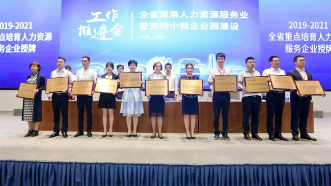 2019年5月29日,由浙江省人力資源和社會保障廳主辦的全省人力資源服務業暨支持小微企業園建設工作推進會在紹興國際人才創業創新服務中心盛大舉行。杭州仁本受邀參加,并在會議上被確立為第一批省重點培育人力資源服務企業。