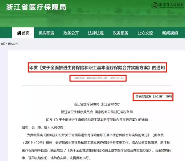 9月12日,浙江省醫(yī)保局發(fā)布《關(guān)于全面推進(jìn)生育保險(xiǎn)和職工基本醫(yī)療保險(xiǎn)合并實(shí)施方案》的通知,明確兩險(xiǎn)合并的具體實(shí)施方案。