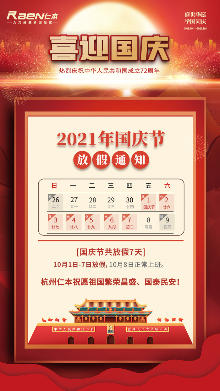 杭州仁本2021年國慶節放假通知: