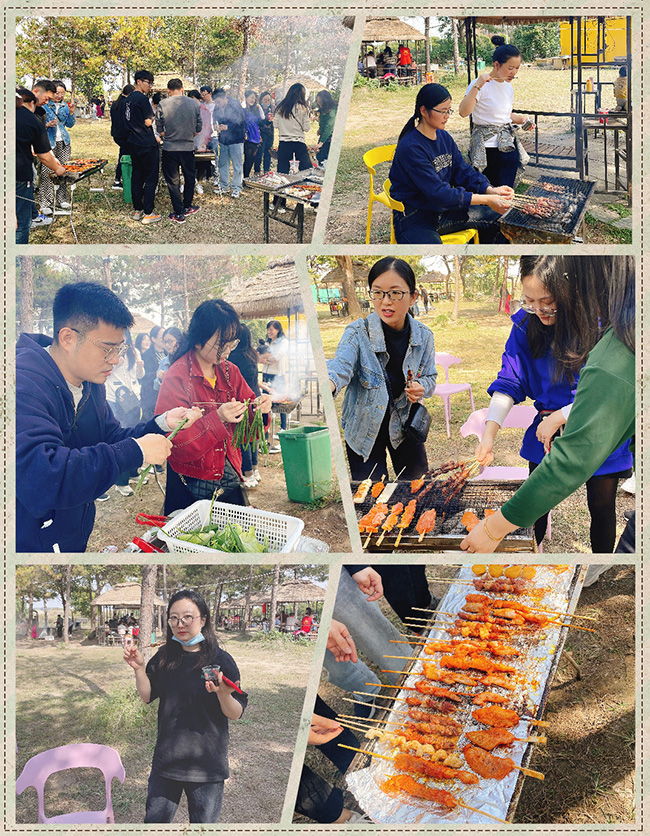 中午時(shí)分,小伙伴們盡興歸來,燒烤派對正式開場!杭州仁本小伙伴們聚在一起,有的生火,有的串串,有的烤制,有的撒粉,合作相當(dāng)默契!大家一邊享受自己烤制的美食,一邊聊著生活和工作中的趣事,還有“麥霸”同事為我們獻(xiàn)上一首首好聽的歌曲。