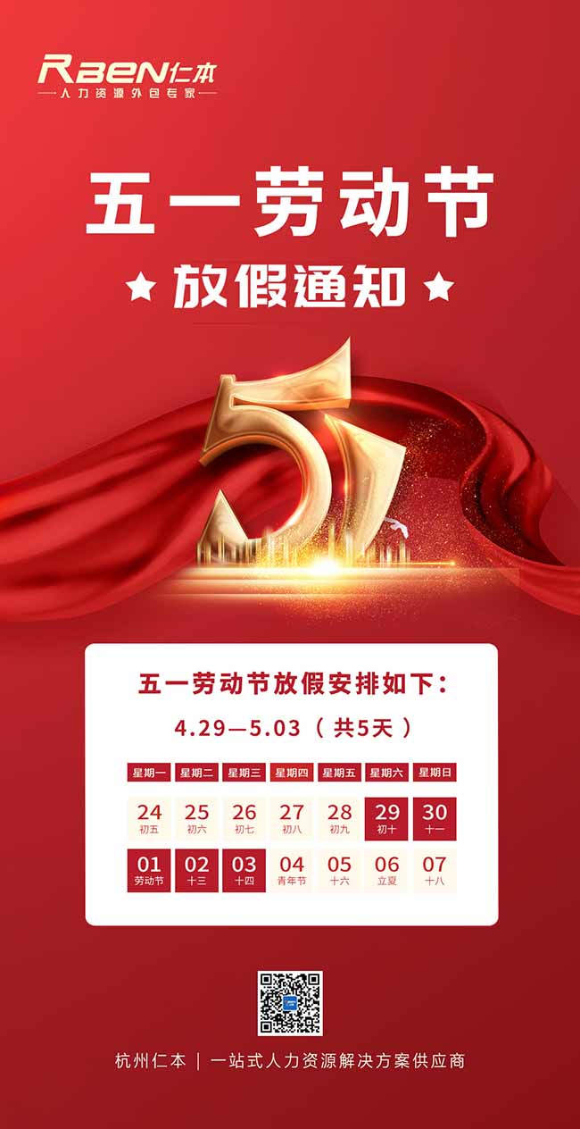 放假時間:4月29日至5月3日放假調休,共5天。5月4日正常上班。