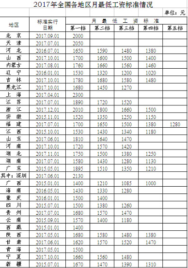 | 2017年全國各地最低工資出爐 你的工資高出多少? |