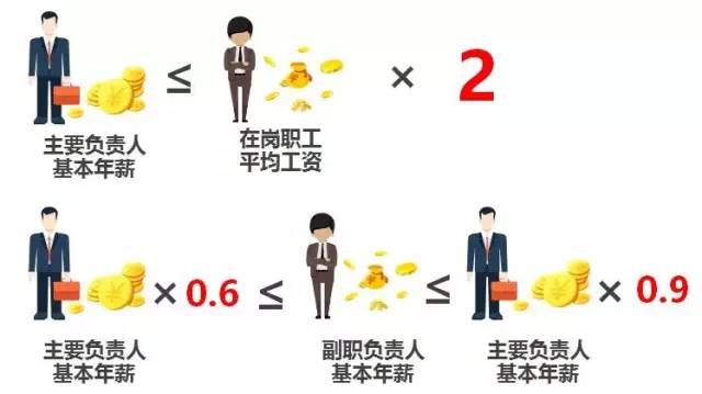 主要負責(zé)人的基本年薪在上年度市管企業(yè)在崗職工平均工資的2倍以內(nèi)確定;副職負責(zé)人的基本年薪按本企業(yè)主要負責(zé)人基本年薪的0.6至0.9倍確定。