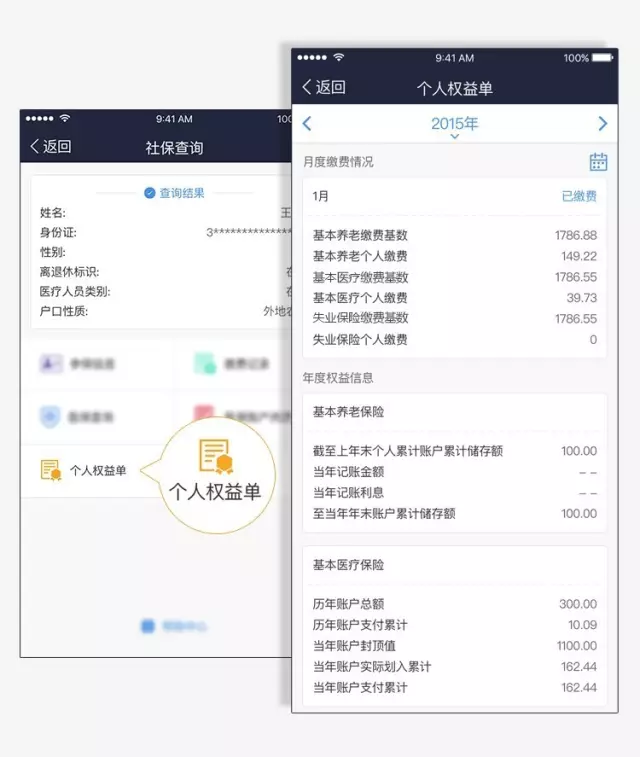 你的醫(yī)保賬戶里有多少錢?歷年賬戶還有多少錢?今年去過幾次醫(yī)院?報(bào)銷了多少金額?都在“醫(yī)保查詢”功能里! PS:“醫(yī)保查詢”功能僅可查詢本年度的醫(yī)保信息。 個(gè)人權(quán)益單